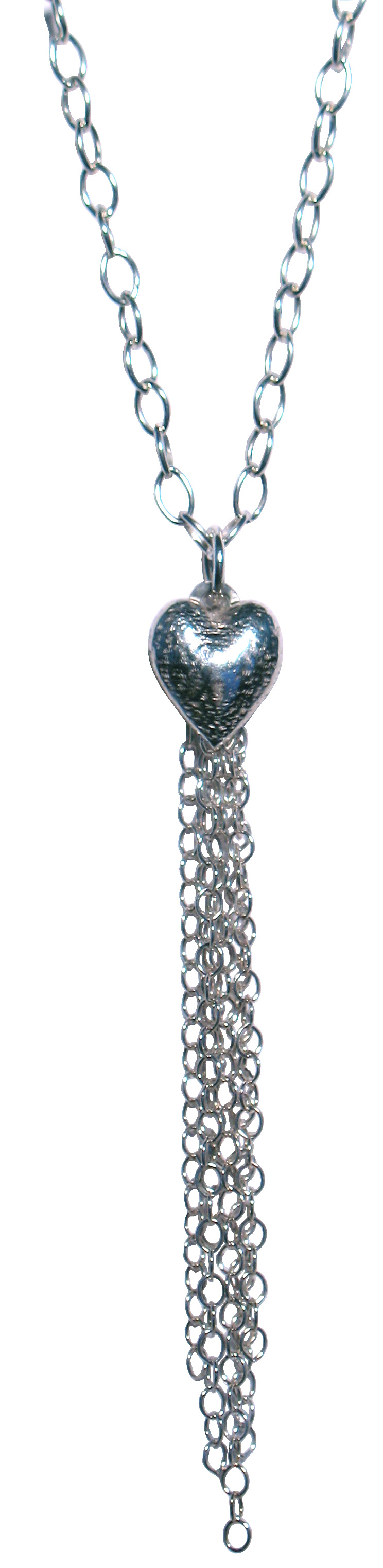 Previous Image necklace heart tassle Fine silver heart with sterling silver chain tassel. Chain length is 16″ Like Loading...